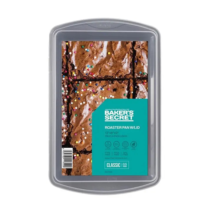 Baker's Secret Classic Line Roaster Pan - 13x9x2 Inch with Plastic Lid