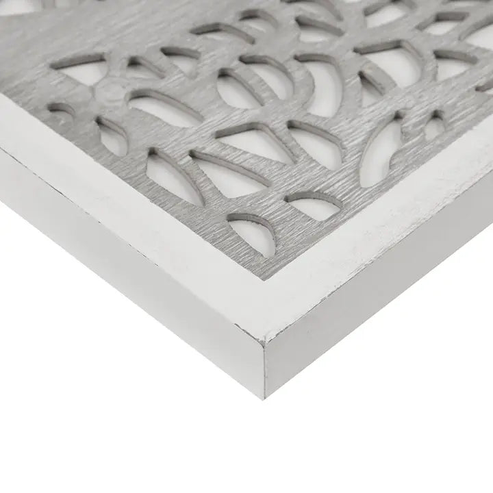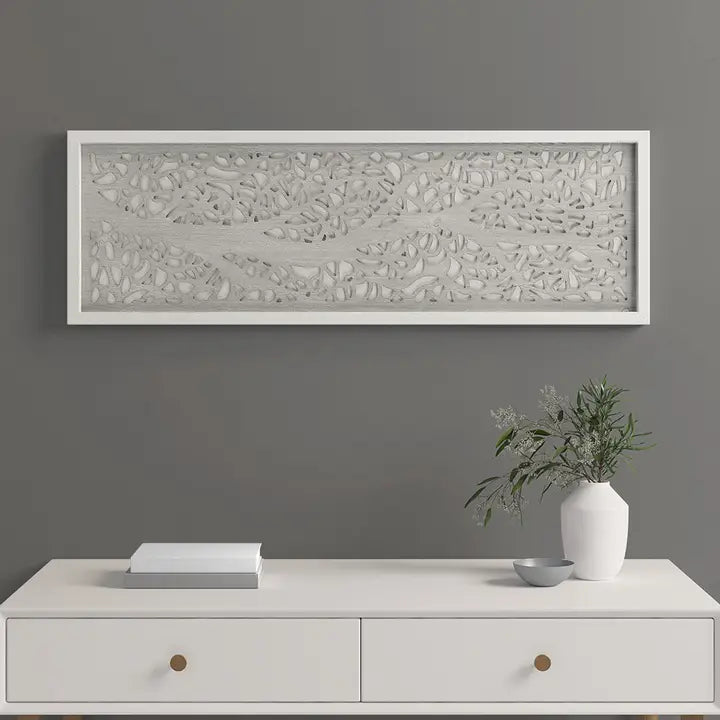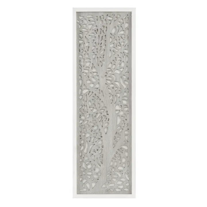 Botanical Carved Branches Reclaimed Wood Wall Decor, Grey