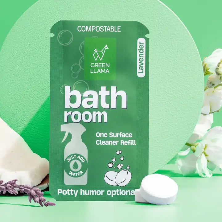 Introducing the Green Llama Bathroom Surface Cleaner Refills, available in a sleek display box. Perfect for retail environments and cleaning companies, this product combines sustainability with convenience.