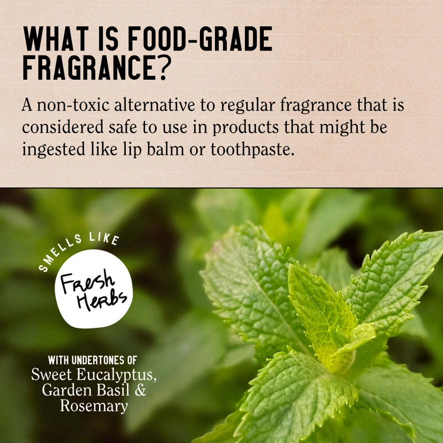 Food-Grade Fragrance We use Food-Grade Fragrances, because your skin absorbs what you put on it, and we want to make sure our formulas are as clean as your freshly washed hair.