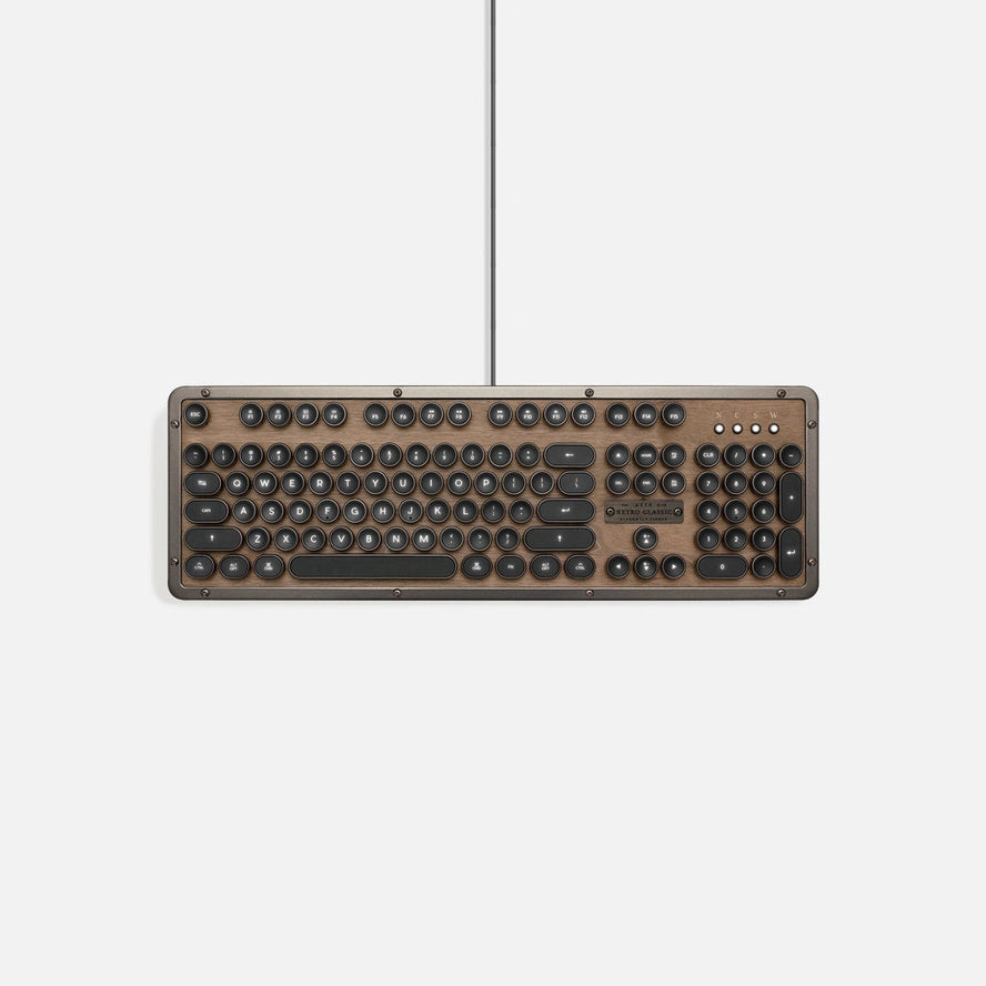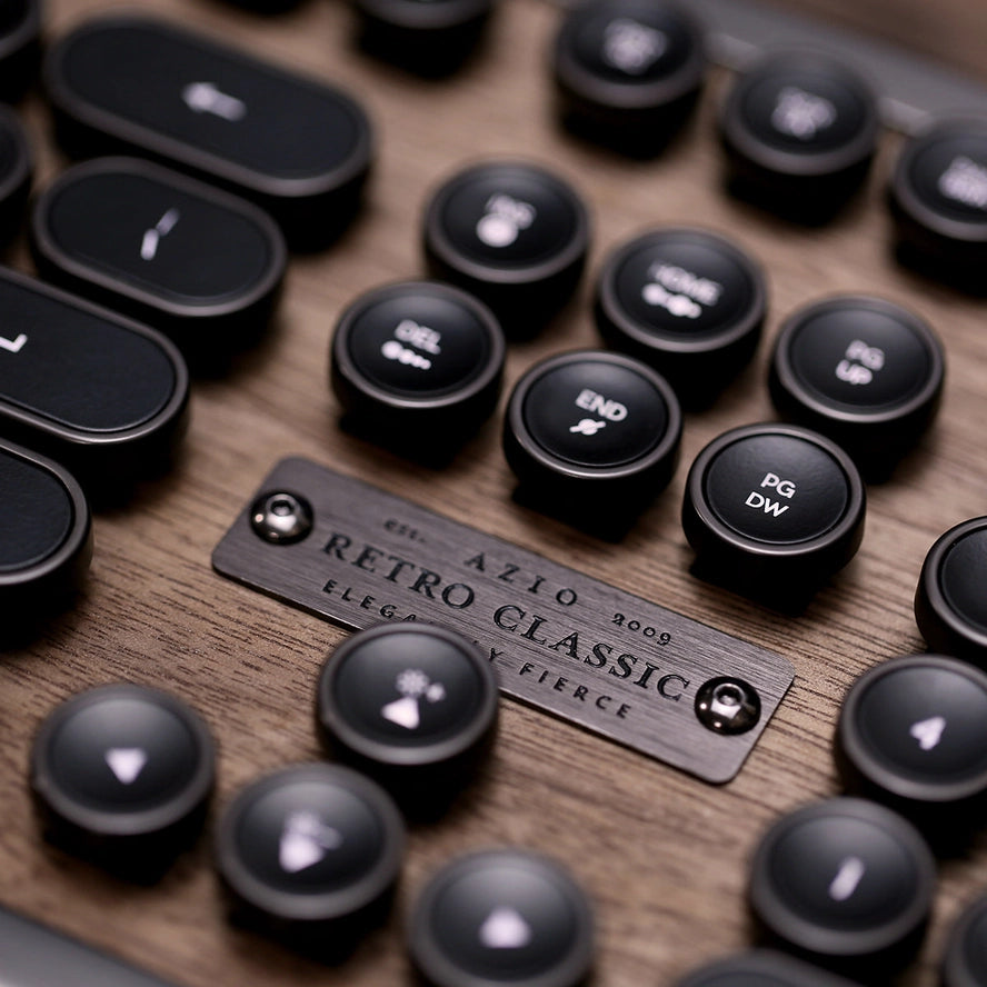 With its design originating from retro typewriters and crafted with modern features, the Azio Retro Classic is the perfect amalgam of past, present, and future. Evoking nostalgia with its round keycaps, this backlit mechanical keyboard is complemented with a durable metal alloy frame and a premium leather or wood surface. By combining genuine materials and innovative technology in a vintage-inspired form, a new modern line of creative tools is perfected.
