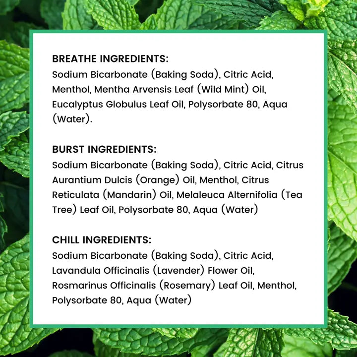 Shower Steamer - Burst: Sodium Bicarbonate (Baking Soda), Citric Acid, Citrus Aurantium Dulcis (Orange) Oil, Menthol, Citrus Reticulata (Mandarin) Oil, Melaleuca Alternifolia (Tea Tree) Leaf Oil, Polysorbate 80, Aqua (Water)