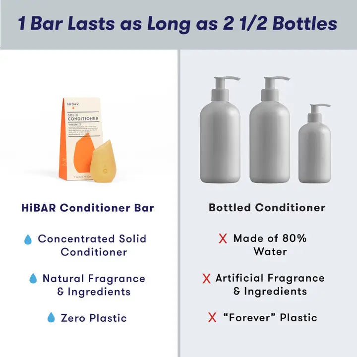The unique shape of HiBAR Conditioner Bars is designed to fit comfortably in your hand for easy use. And don’t be fooled by the compact size—each conditioner bar lasts as long as 3 big plastic bottles of liquid conditioner. Whether you’re looking for curl care conditioner benefits, volumizing conditioners for fuller hair, or a plastic-free way to condition, HiBAR delivers. Bonus: it’s cruelty free, and leaves your hair feeling soft after every wash.