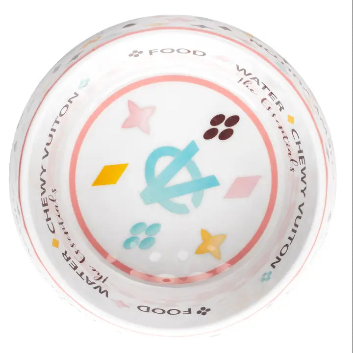 White Chewy Vuiton Dog Bowl - 3 Sizes!! Dog Food Bowl